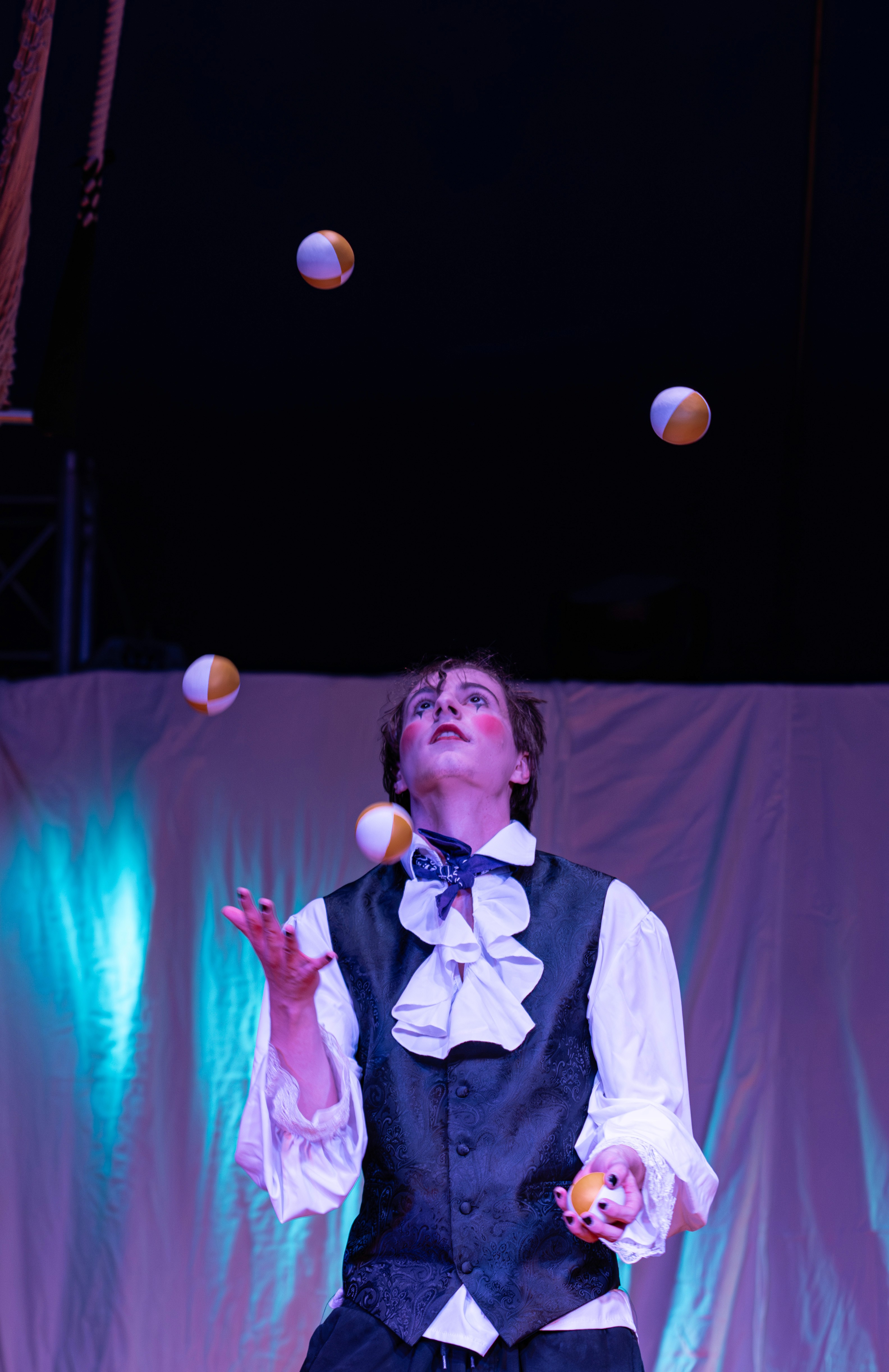 Ich heiße Finn Jünger und bin ein aufstrebender Circus Artist aus Würzburg. Vor mehr als 10 Jahren entdeckte ich im Training des Circus Knirps meine Leidenschaft für Artistik, Jonglage und Performance. Einmal entfacht, brennt seitdem mein Feuer für die Circuswelt. Seit den Anfängen habe ich mich durch intensives Training und Freude an der kreativen Arbeit immer weiterentwickelt. Als Schauspieler, Circus Artist und Performer konnte ich bei einer Vielzahl von Auftritten in Schulen, bei Stadtfesten und auf Mittelaltermärkten bereits jede Menge Bühnenerfahrung sammeln.2023 belegte ich den dritten Platz beim 2. Unterfränkischen Varieté-Nachwuchspreis im Rahmen des 7. Internationalen Varietéfestivals von Dirk Denzer.